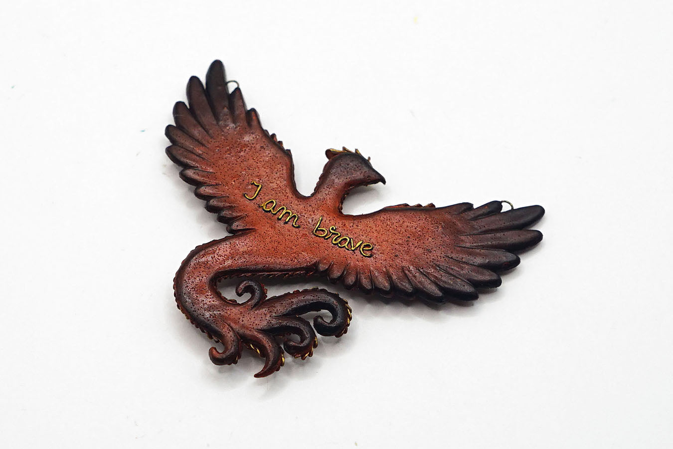 The pendant comes with a secret positive affirmation on the back to whisper ‘You got this’ when you forget (a little encouragement from a bird that knows how to rise from the ashes).