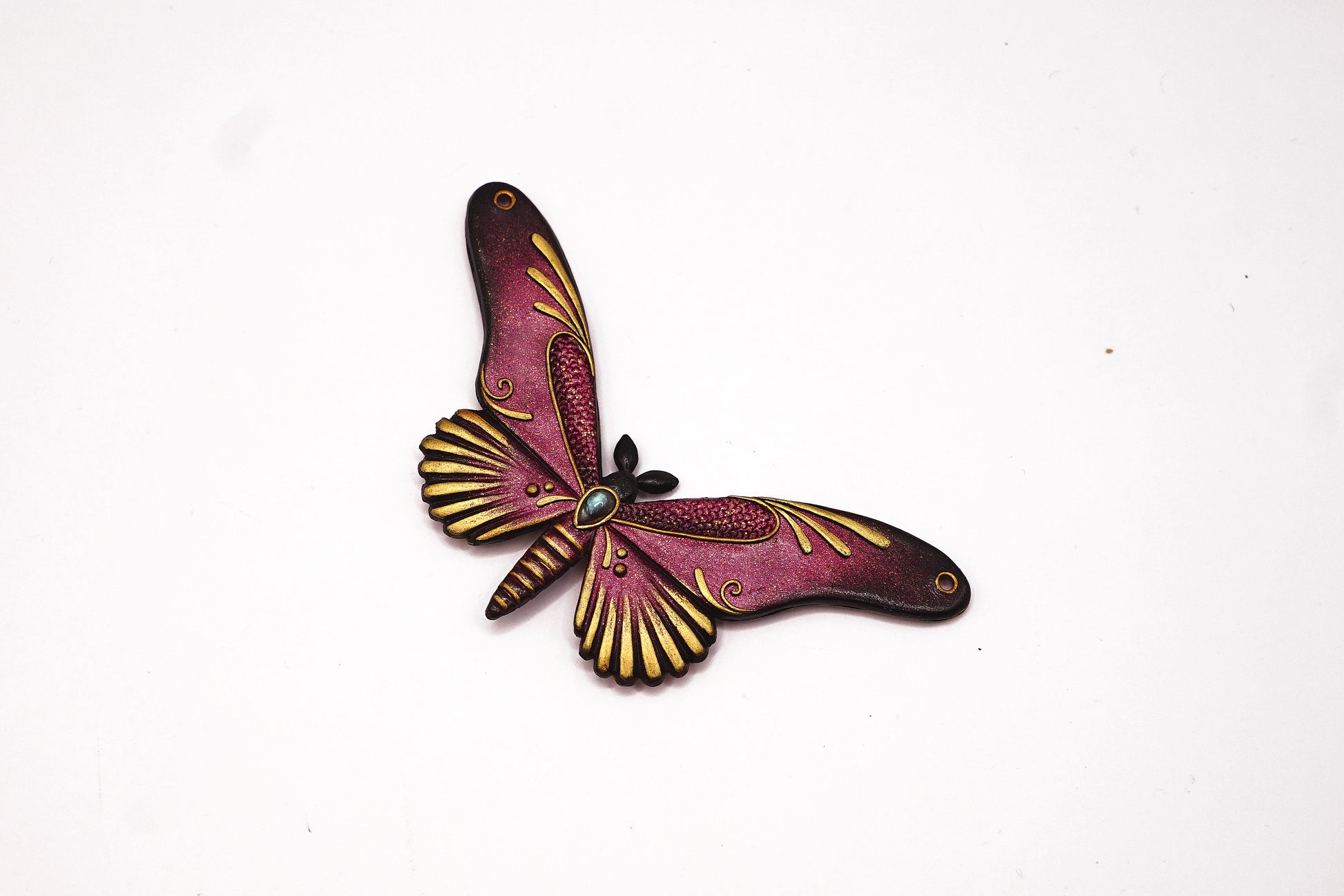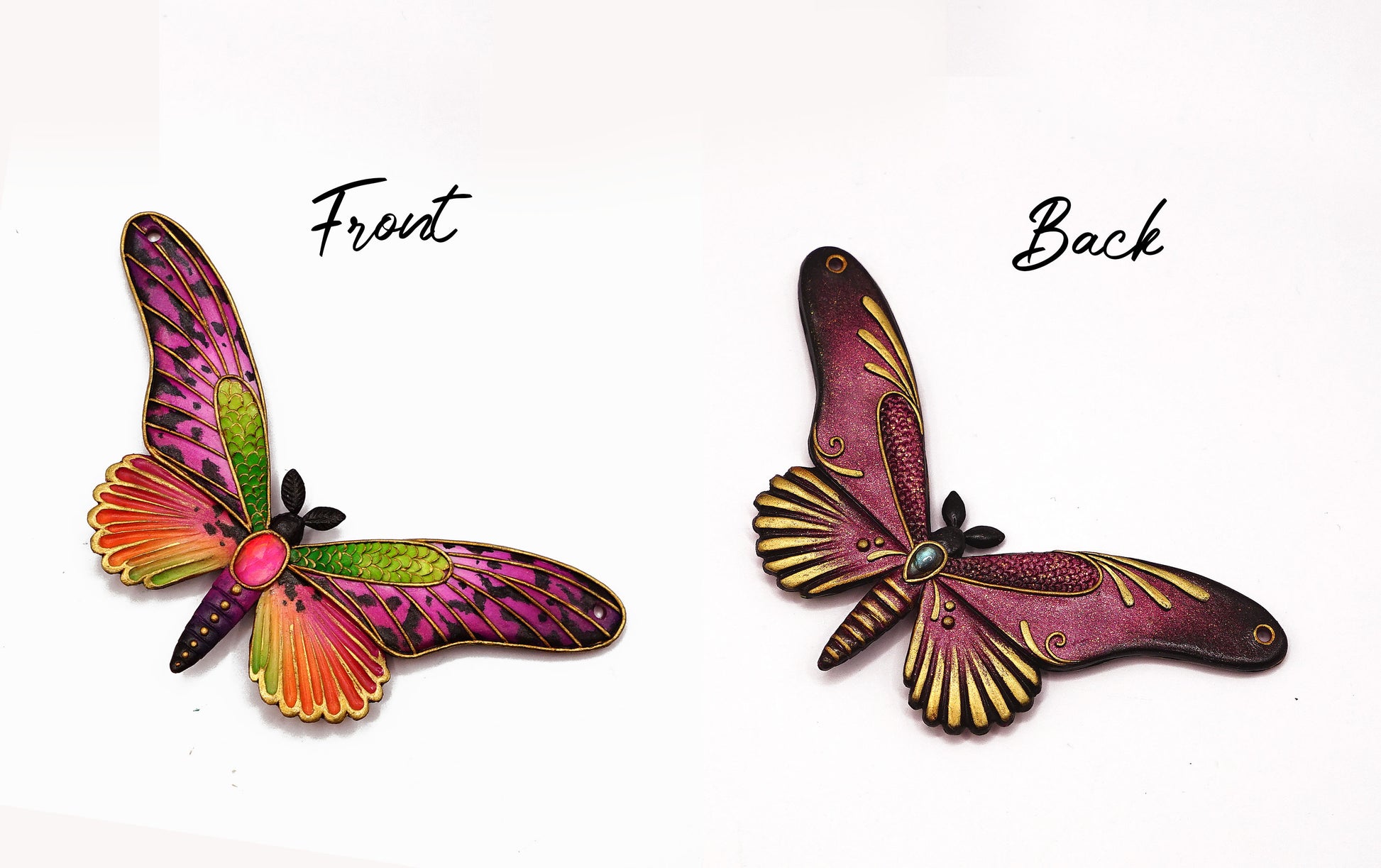 A polymer clay pendant inspired by the beauty of butterflies. The best part? The piece can be worn on both sides. Double-sided for double joy!