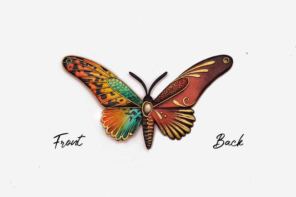 A polymer clay pendant inspired by the beauty of butterflies. The best part? The piece can be worn on both sides. Double-sided for double joy!